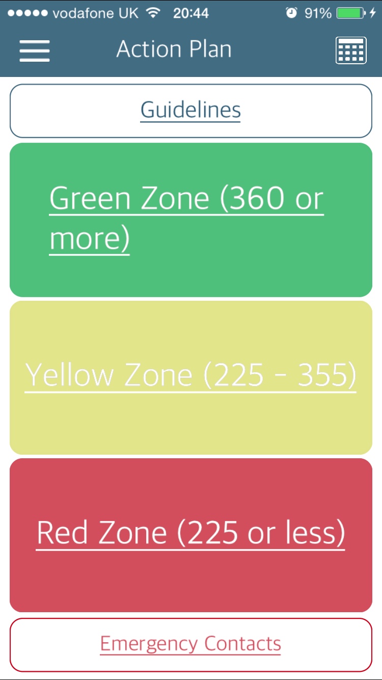 Recording peak flow is one thing every asthmatic should do almost from pre diagnosis stage. This section of the app I particularly like because not only can you define where your red, yellow and green zones but you can input comments about what action to take when your peak flow results falls in a certain zone. These comments can be specific to you rather than the more generic plans which will often instruct you to increase you inhaler and seek medical attention (or along those lines). Being able to do this means those with slightly different action plans can input their individual needs.
