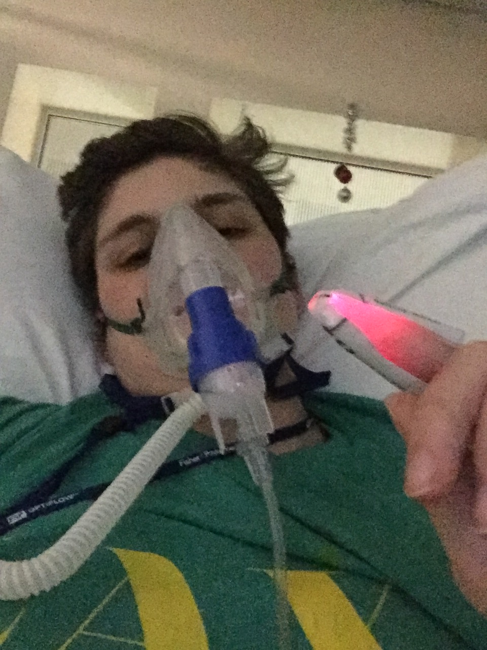 The main thing I remember in ITU is one of the nurses saying they had to remember to write 16 now rather than 15. I asked when New Year happened. I had no idea what the time was or that New Year had in fact been. I had no concept of how long I had been in hospital. I had not been intubated or anything but I still had no memory or concept of time. It turned out it was the 2nd January and the afternoon. I have never really lost my memory like this before. I have seen people who get confused and don’t know the time or date and thought how weird it must be and it is. Afterwards I thought the nurse must think I was crazy because I had no idea of time etc. This was my best friend: my elephant tubing high flow warmed oxygen!!!
