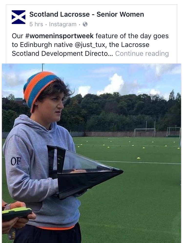 So that brings me on to Lacrosse. I was totally overwhelmed, proud, shocked, speechless when Lacrosse Scotland featured me for day one of women in sport week. This is what was posted: