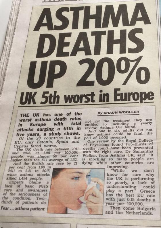 But World Asthma Day 2018 was recognised by Asthma UK with a huge thunderclap on how to deal with asthma attacks which reached far and wide across social media. However there was some very disappointing news also announced which is devastating and really makes you think how, why and when will those in power do something about it.