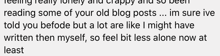 Over the past few weeks I have struggled to get motivation to write here in my blog but today I received a message which reminded me just how important it is for me to write my blog.