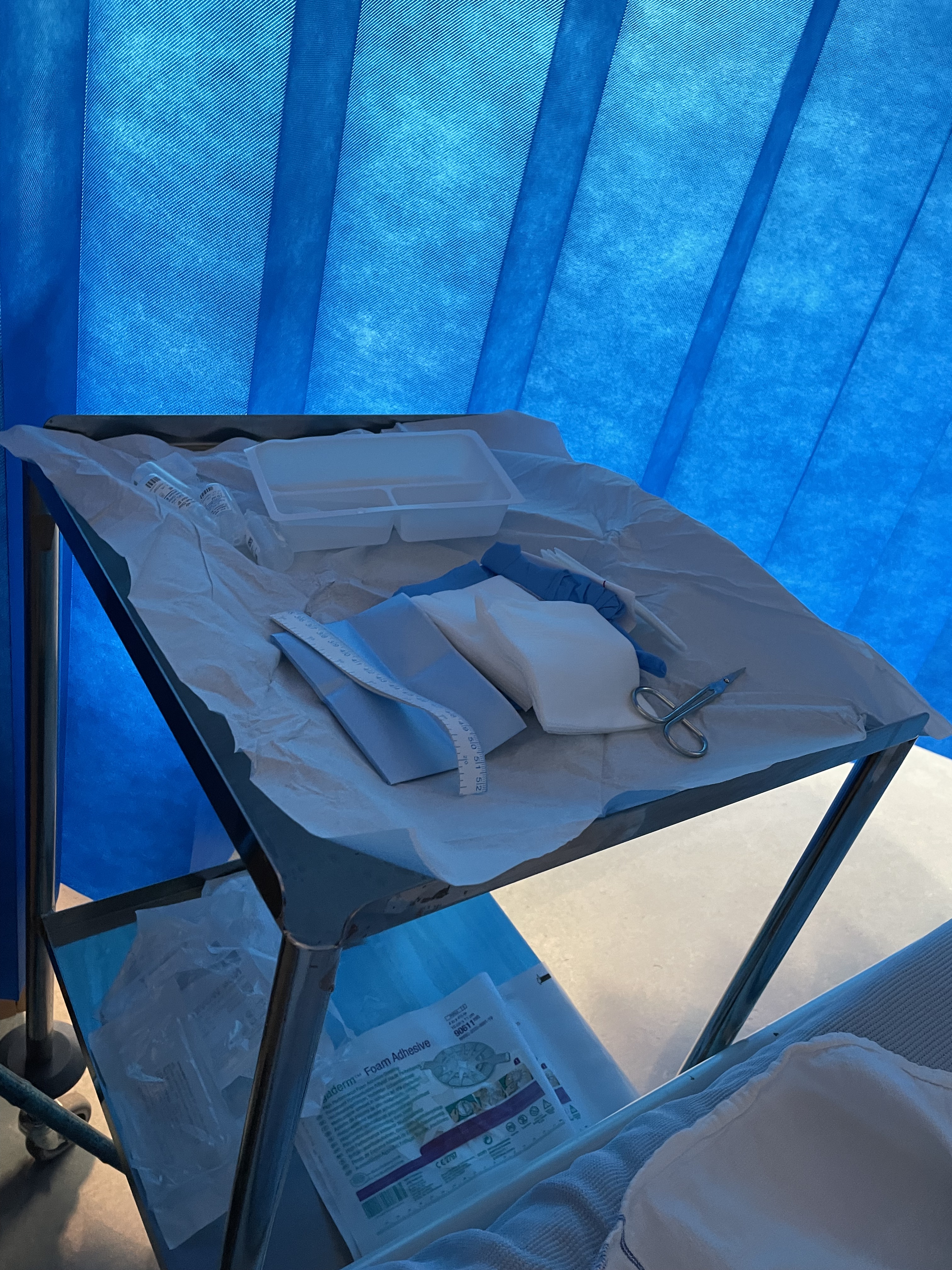 My surgical wound was left half open to prevent any secondary infection developing and the skin closing over making a new abscess. Each day the wound is packed with stuff to aid healing and then dressed. We had hoped this would only be for a few days but 3 weeks on and it is still not showing much improvement.
