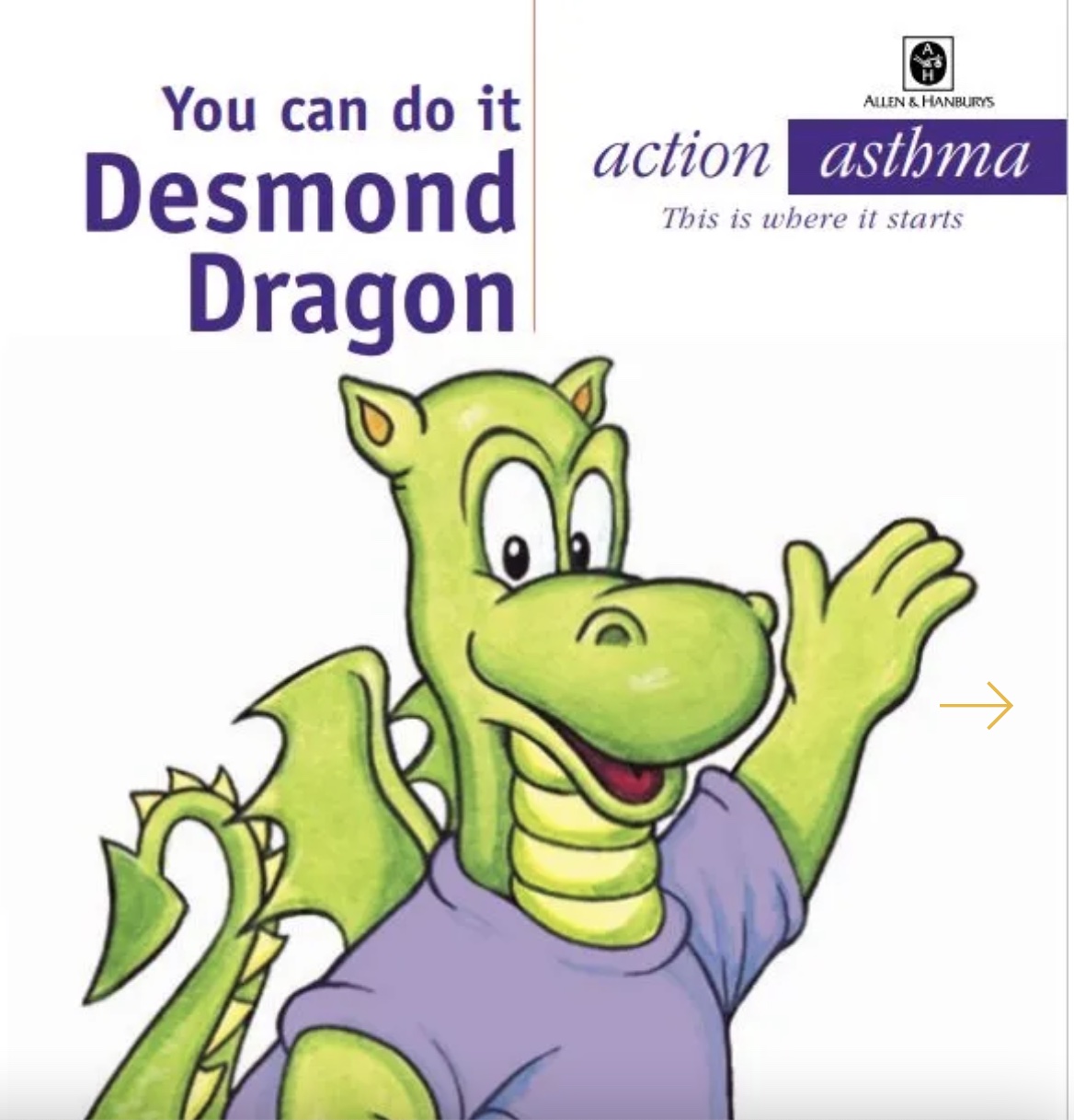 During this time as a child and not directly linked to the National Asthma Campaign I remember so vividly the educational materials that were developed by Allen & Hanbury (a pharma company that has now been absorbed by GSK). The asthma education and management resources for children all featured Desmond dragon. I remember it so well and the story of Desmond too!