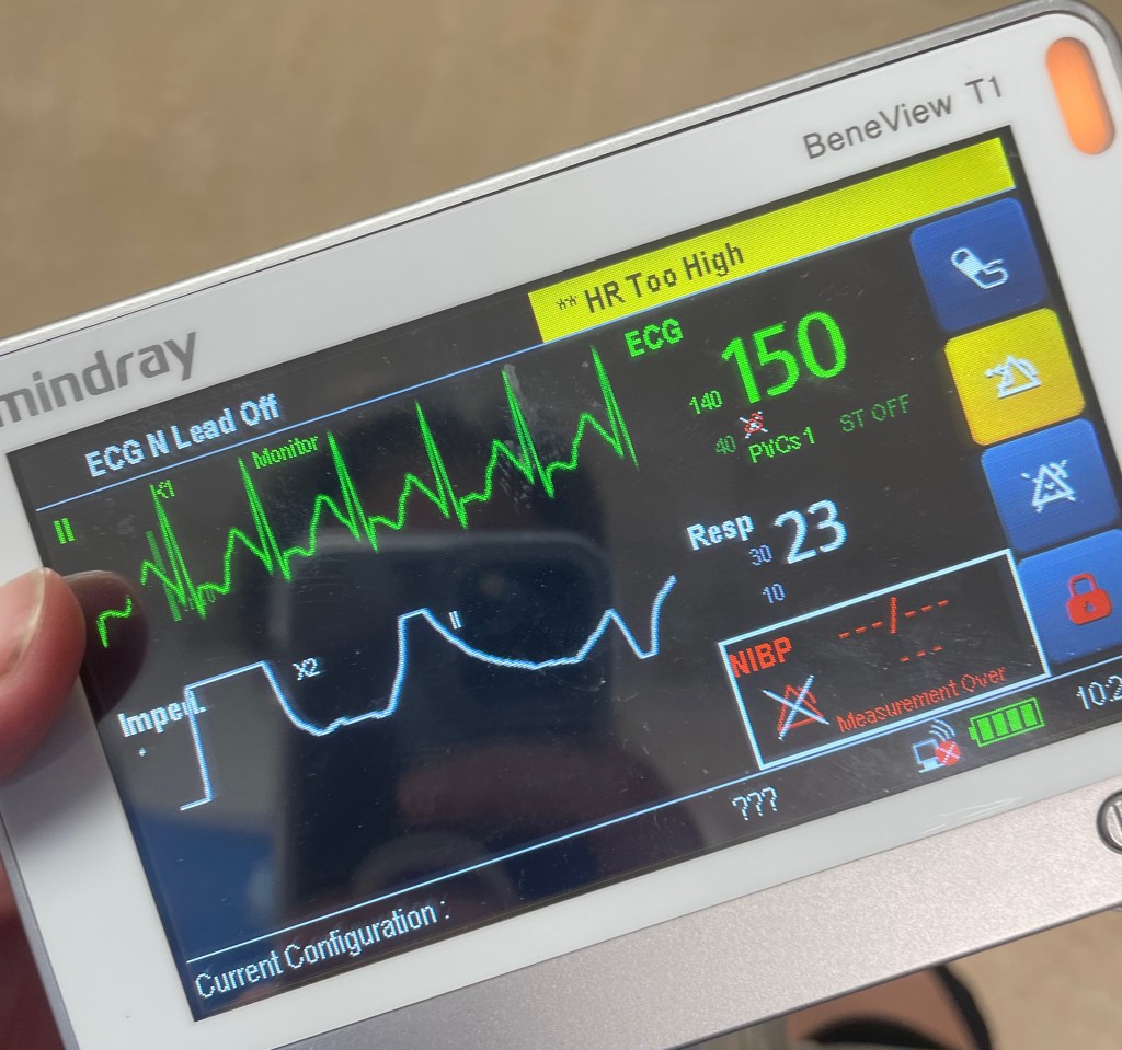 By the sunday night I was finding my chest very tight and just not right. I was keen on the Monday to try and speak to respiratory to see what action I should take. Of course my consultant was on holiday as was his secretary which meant I was not able to speak to anyone and had to call my GP. My GP freaked out about my chest, how it was sounding and that I reported I was fairly tachycardic, so wanted me to be checked at the hospital. I was not totally averse to this as I sometimes am because I wanted some input so I knew what I should be doing with my medication for my asthma.