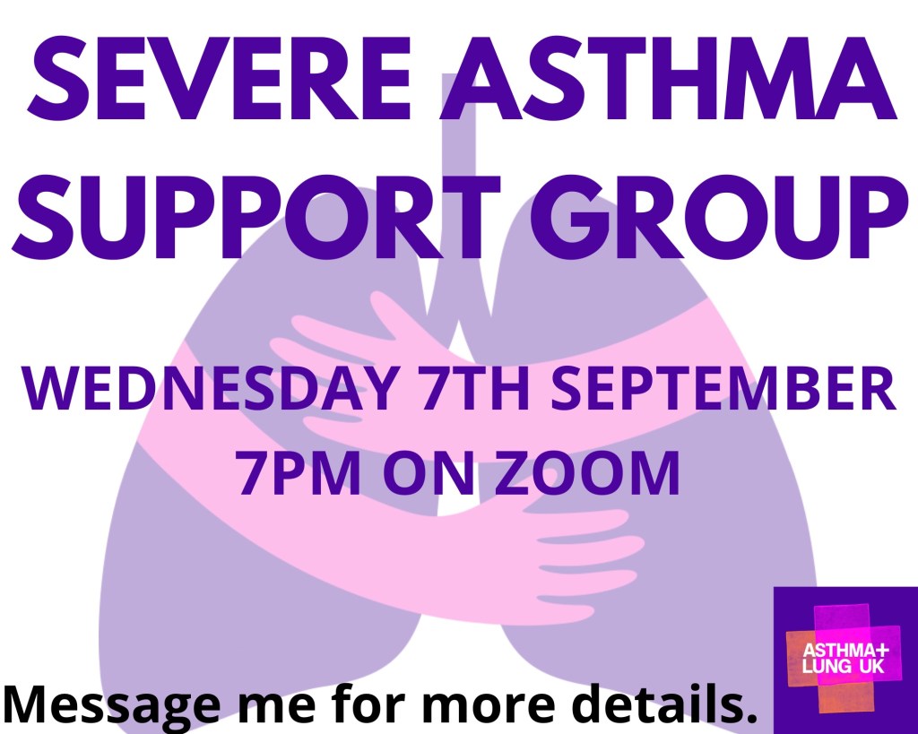 If you are interested in joining the Severe Asthma Peer Support Group please leave me a comment here, message me on social media or if you have my email send me one.