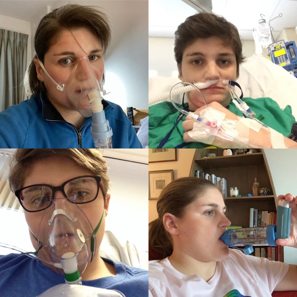 In all the photos above I have severe asthma (some of them are a lot older than others). In the top photos it doesn’t look like there is anything wrong with me but the bottom photos you can clearly see there is something not right. But in all the photos I have severe asthma even though you cant see the state my lungs are in. This is what can make it tricky for people to understand how devastating it can be. Unless you are in hospital you cant really outwardly see the struggles and effort that goes into every breath all day, every day. You will often read things online that say hold your nose, breathe through a straw and run up some stairs and that is what it feels like to have an asthma attack, on some days this is what it feels like all the time but you don’t have the luxury of taking the straw out your mouth and stop holding your nose. You have to keep going, even when you are so tired and what to stop you know you cant stop you have to keep going, there is no choice about it.