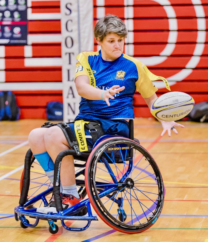 Before my first taster session with Edinburgh Giants Wheelchair Rugby League I was sitting trying to convince myself to get in my car and drive up to the Pleasance. I was so very close to not going. I don’t tend to do well when I am going to something where I know no one and am trying something totally new even worse when mentally I am not in a good place either. I had to dig so deep and do a lot of self talk to motivate myself to go.