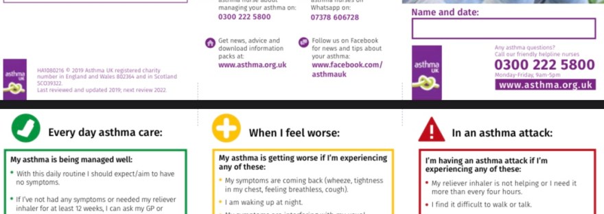 Recently on social media I have become so aware that many with asthma do not have the essential tools they need to enable them to manage their asthma effectively and live a life where asthma does not impede their daily routine. 1. Personal Asthma Action Plan (PAAP) or action plan for short. This is essential… Continue reading Essentials for Good Asthma Management